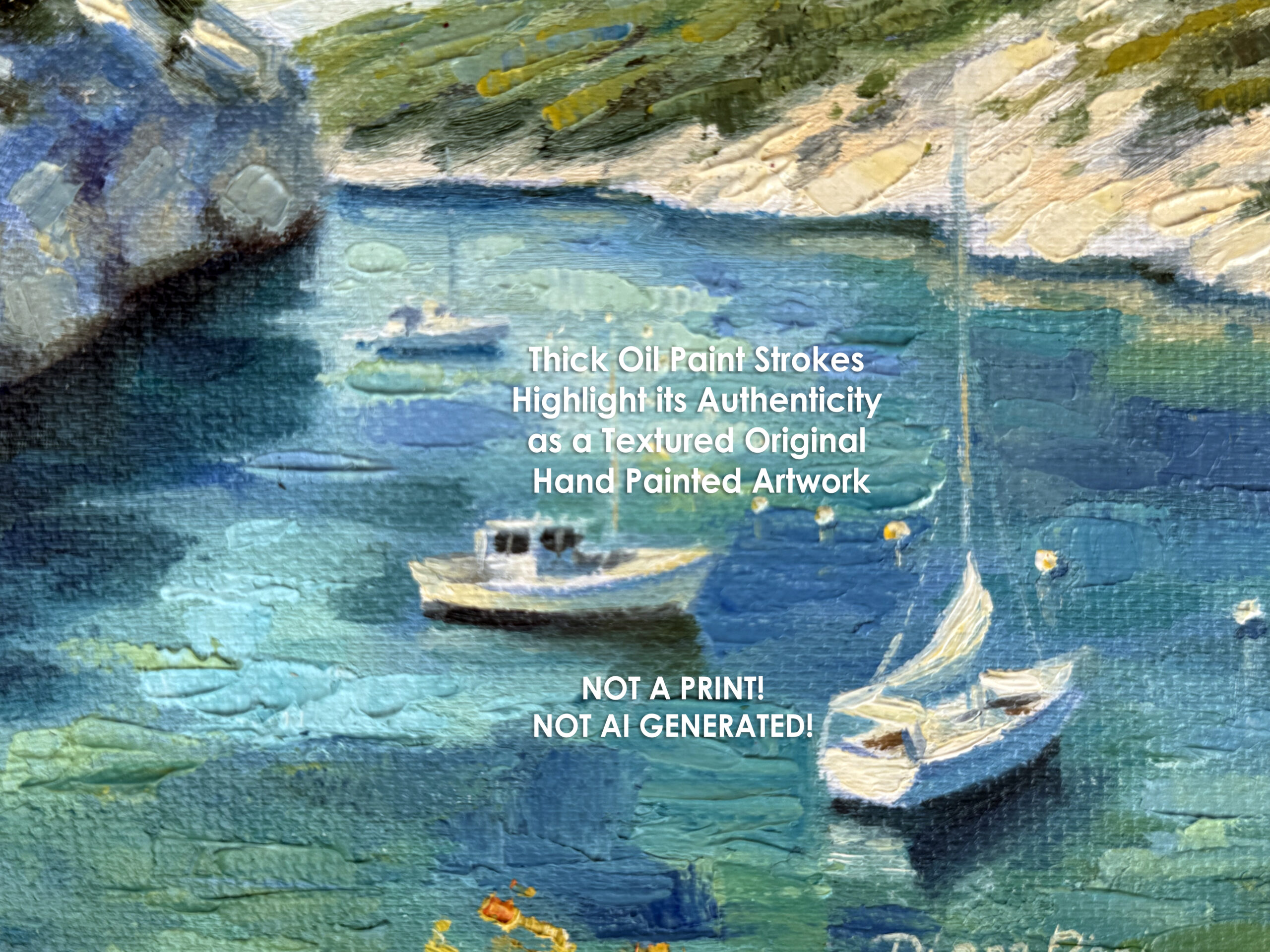 Seascape Original Hand Painted Art of Calanques in Marseille, France in Impasto Oil Technique