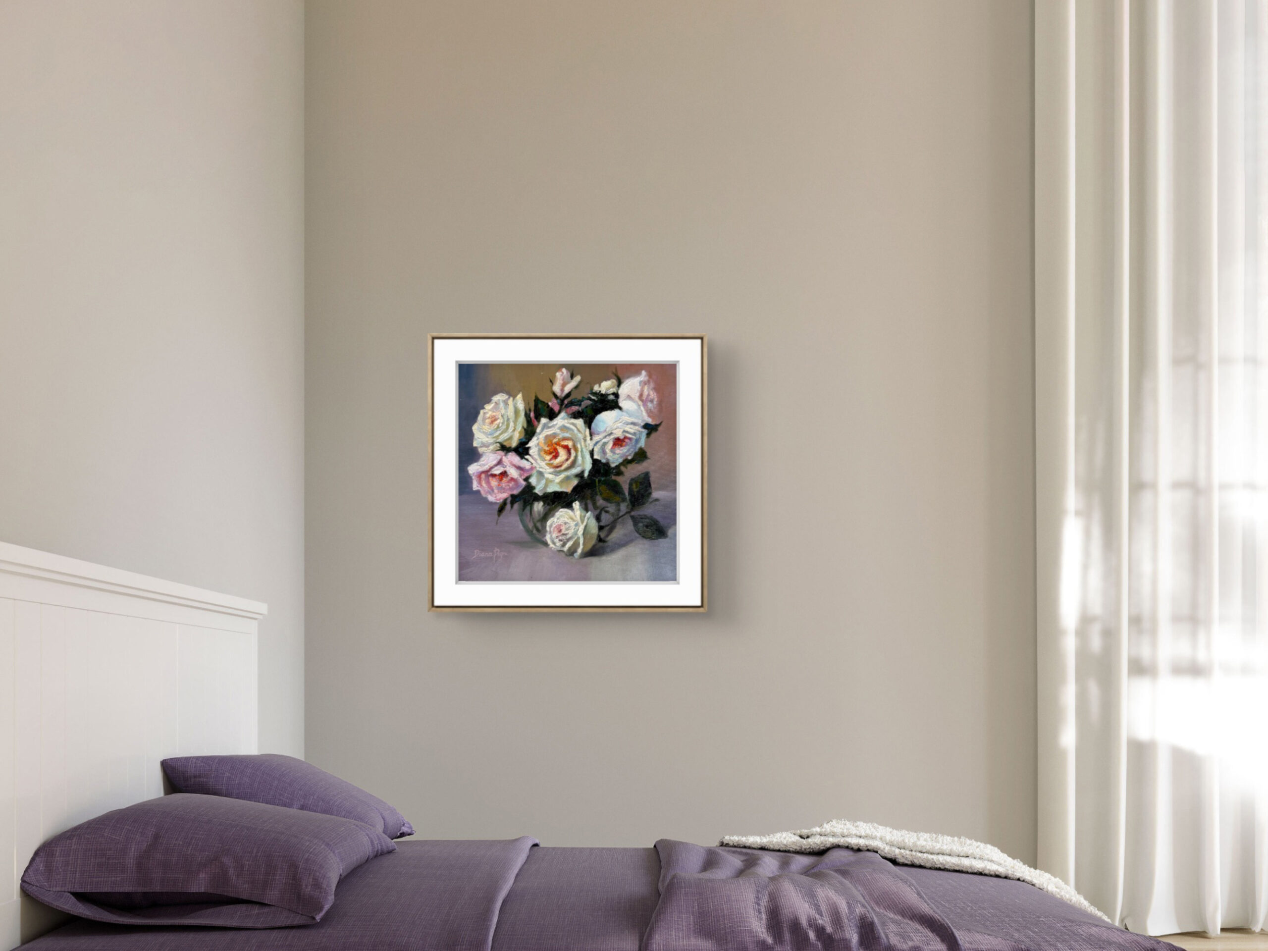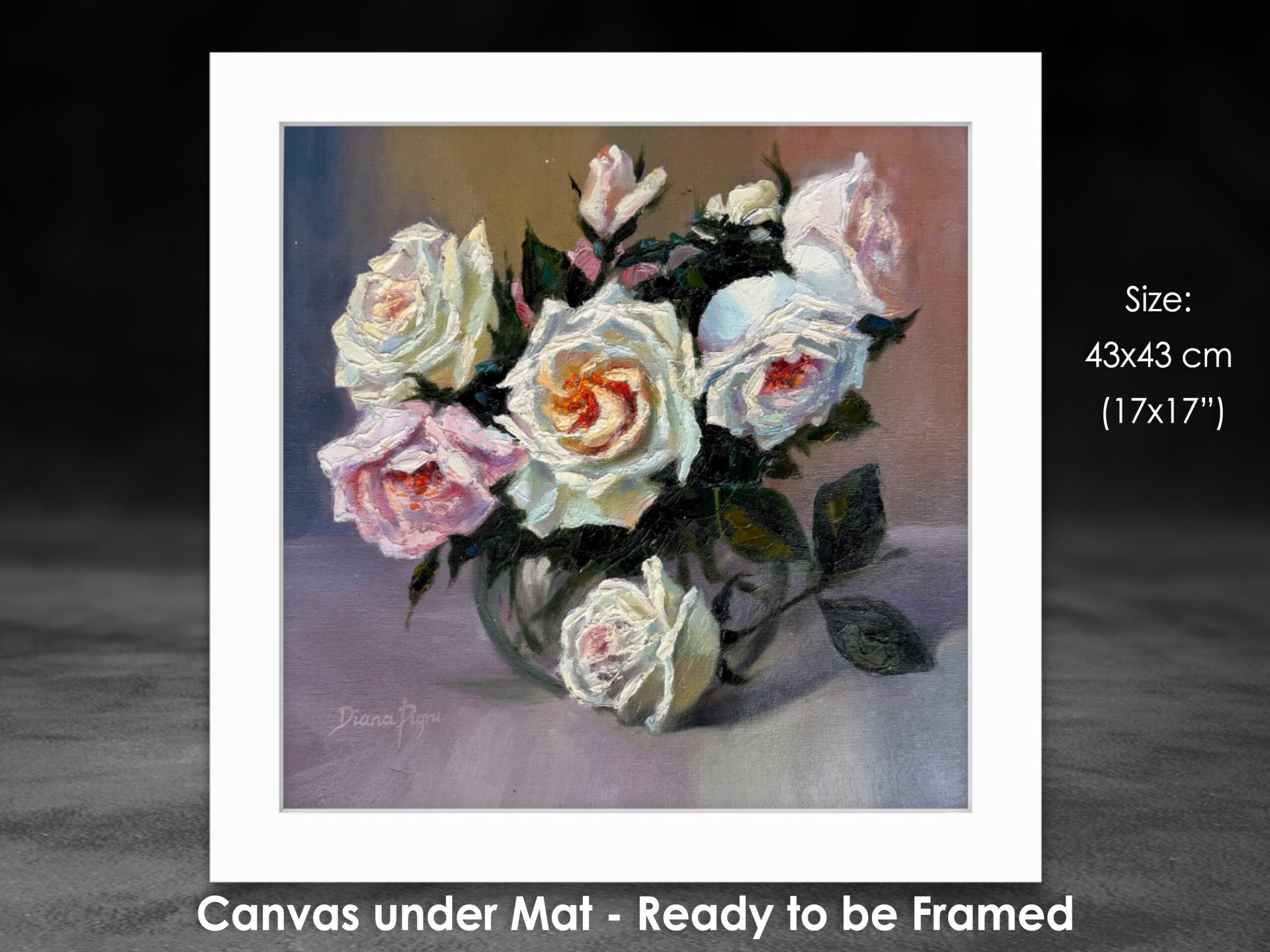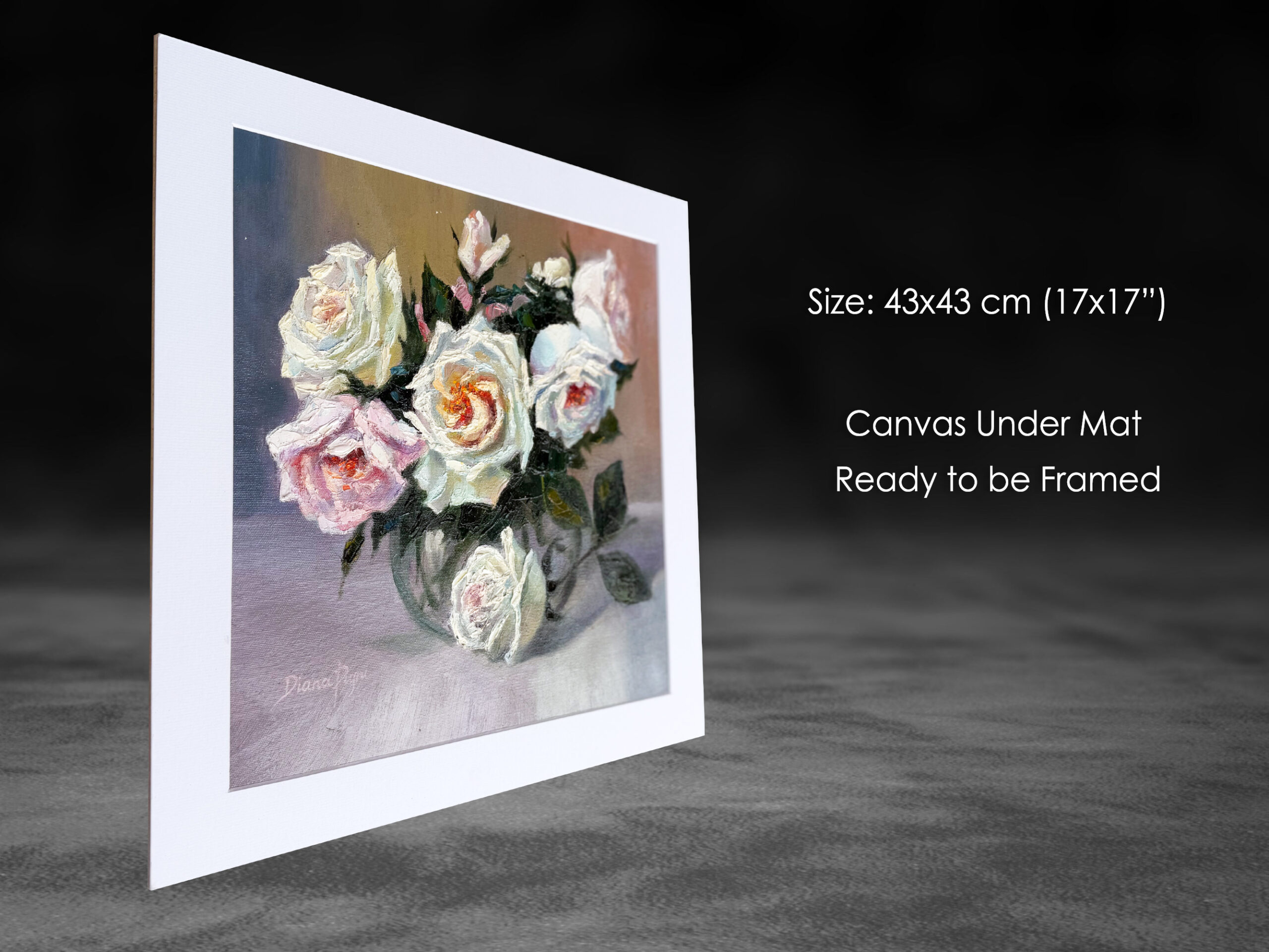 White roses symbolize purity, sincerity, and new beginnings, while blush roses represent admiration, tenderness, and gentle love. Together, they create a harmonious message of romantic elegance and emotional warmth, making this painting a meaningful gift or a beautiful statement piece for your home.