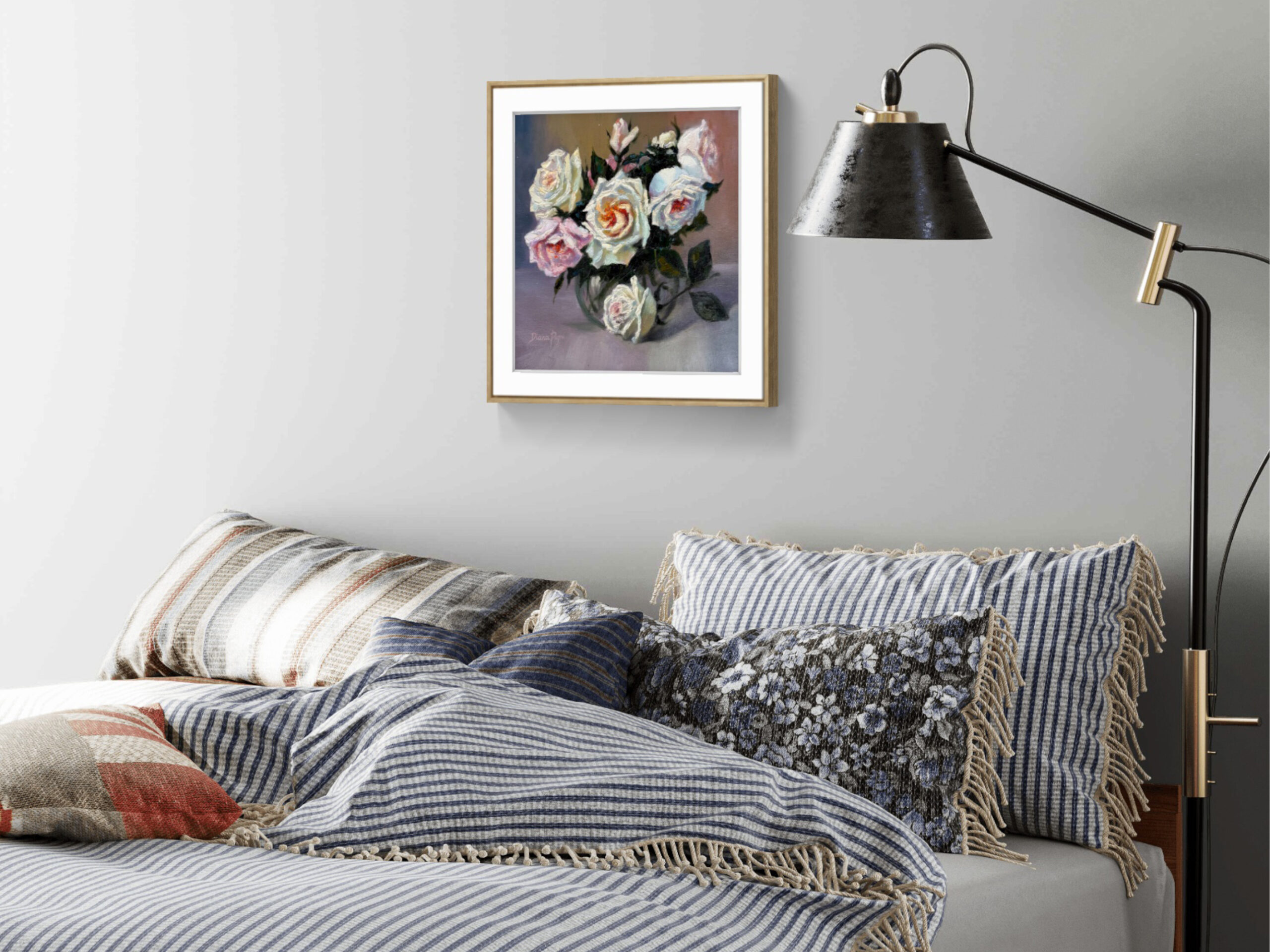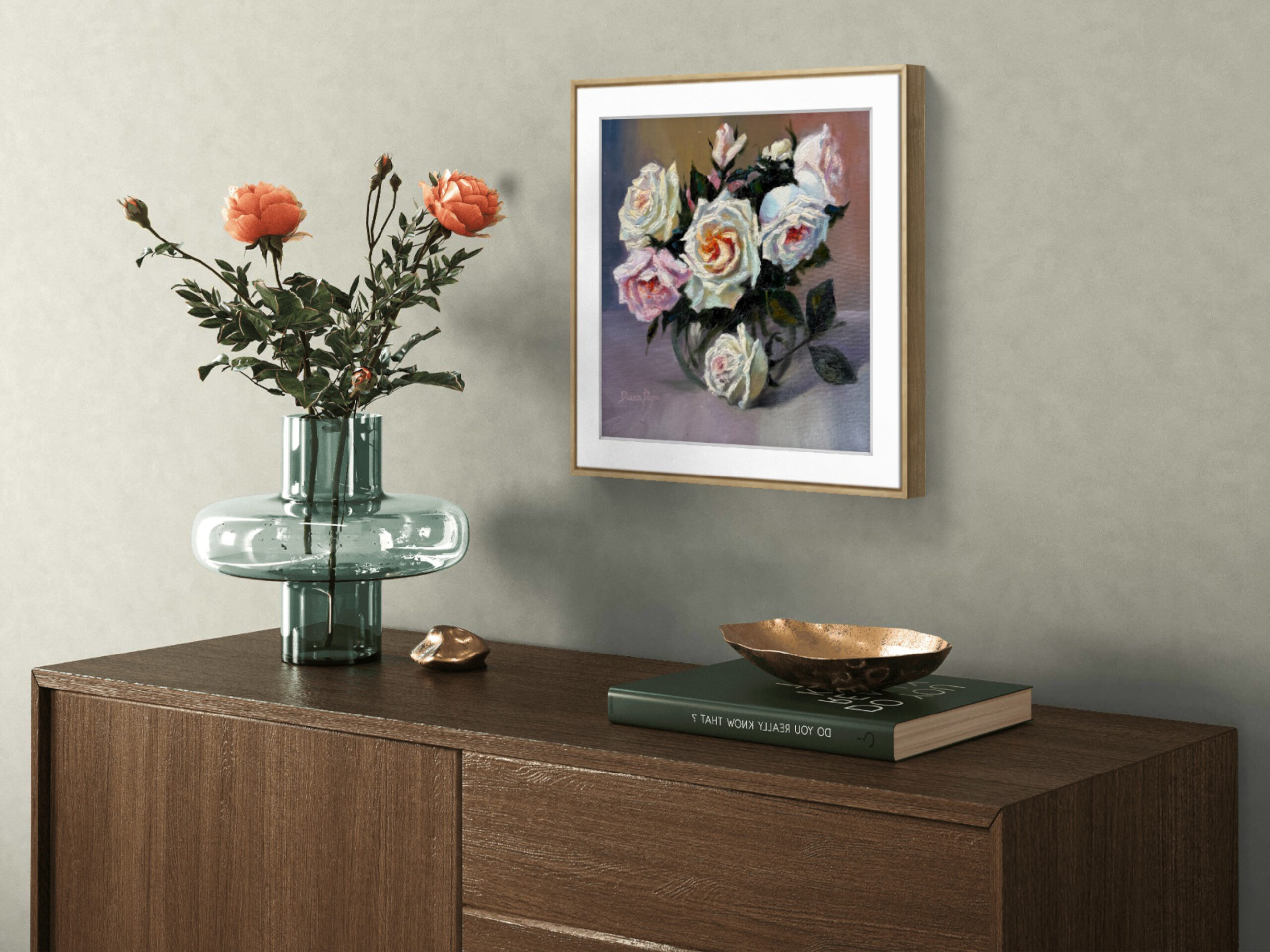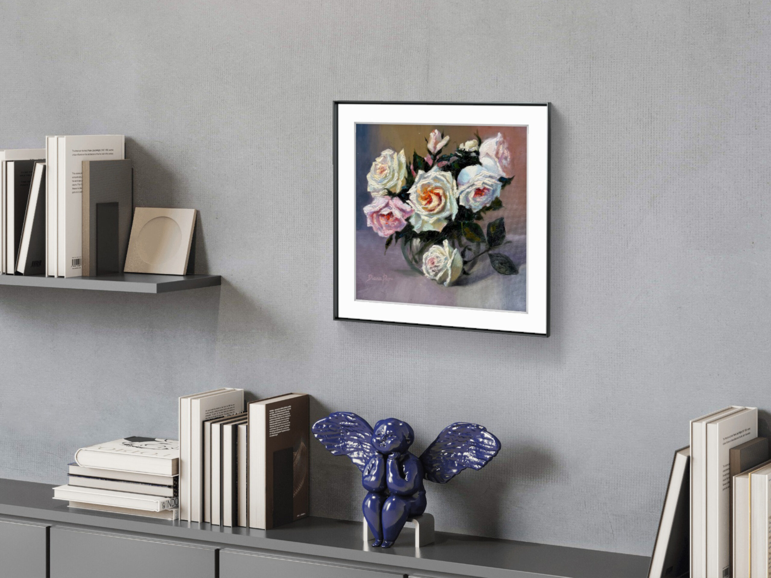 White roses symbolize purity, sincerity, and new beginnings, while blush roses represent admiration, tenderness, and gentle love. Together, they create a harmonious message of romantic elegance and emotional warmth, making this painting a meaningful gift or a beautiful statement piece for your home.