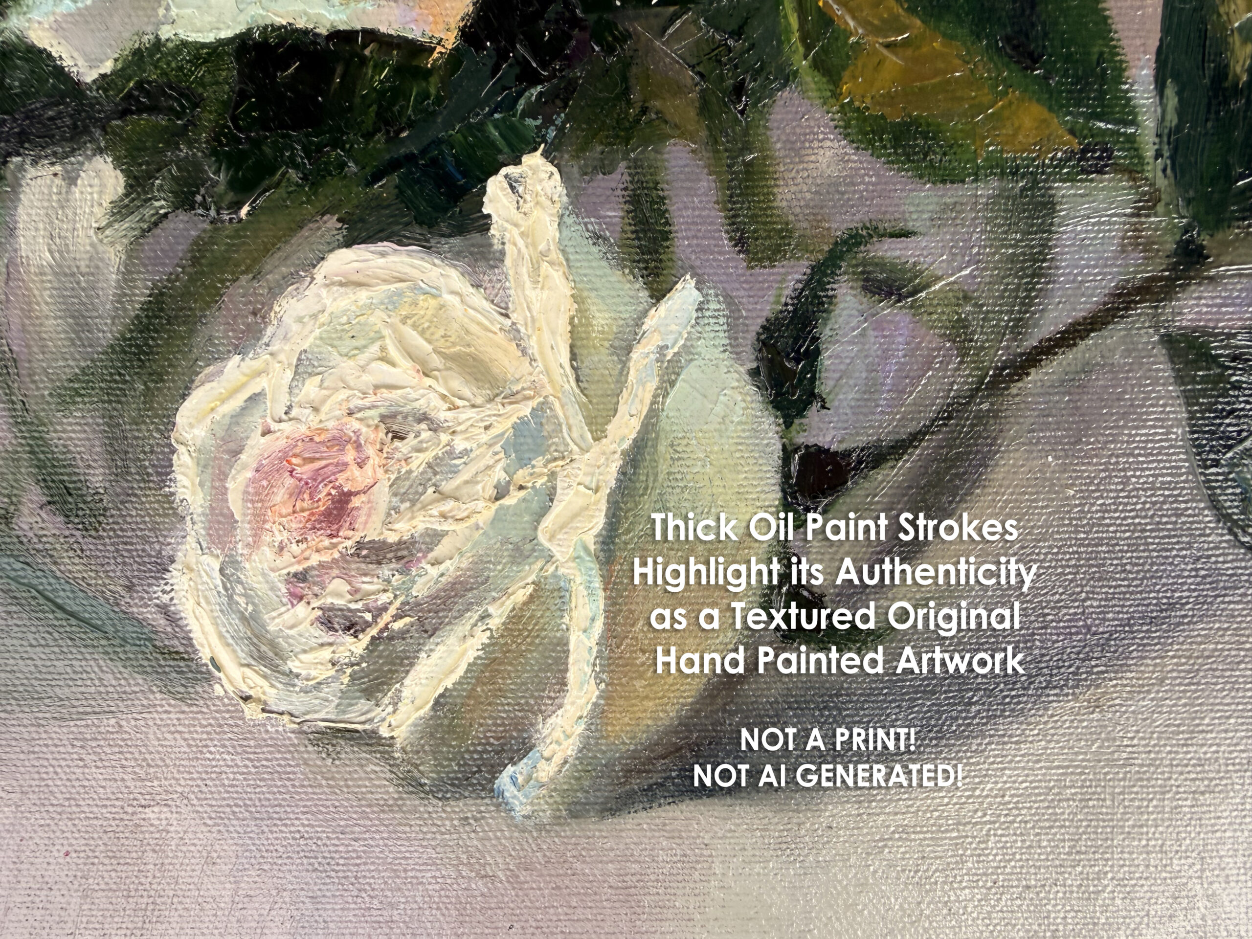White Rose Impasto Oil Painting