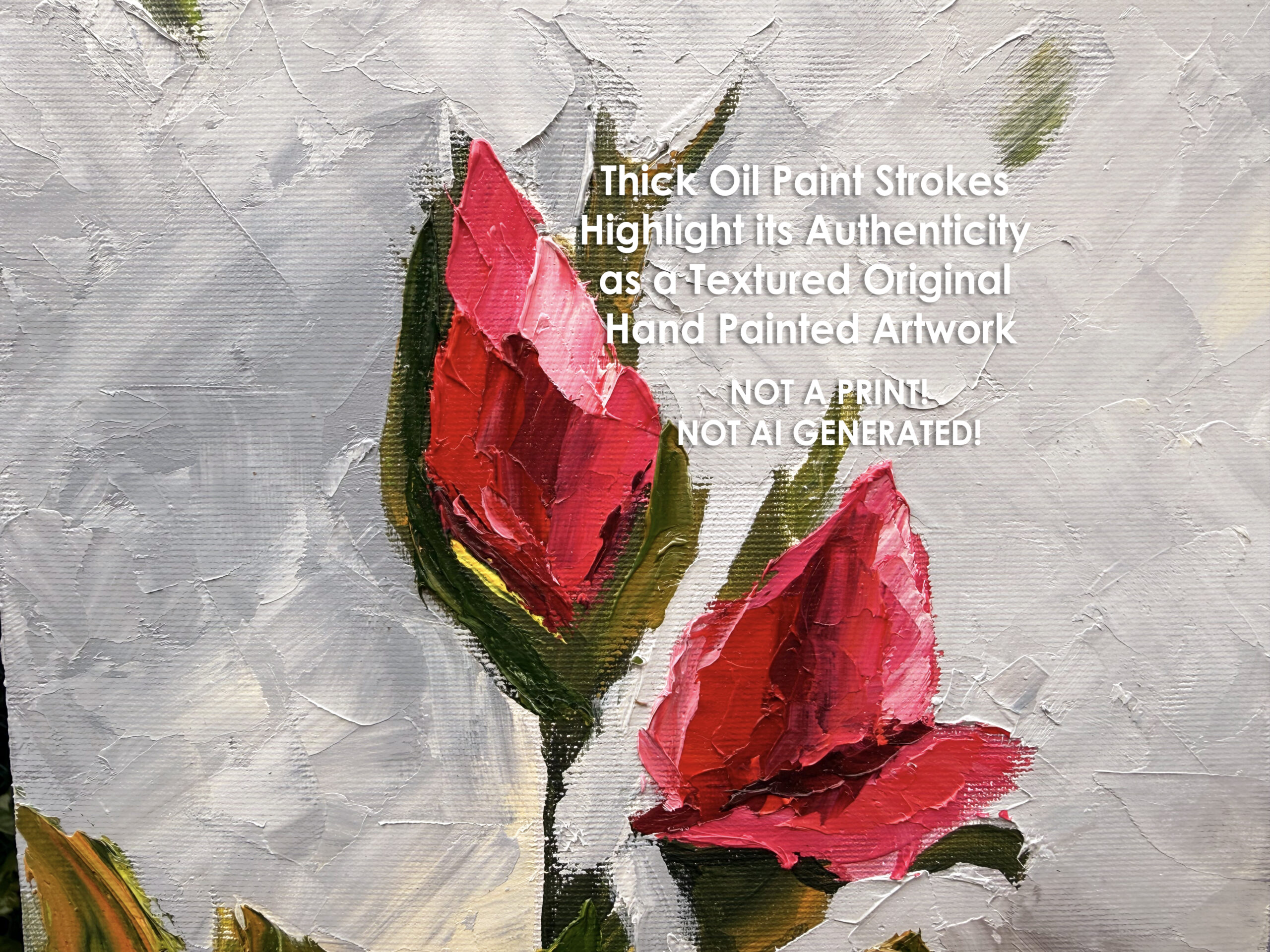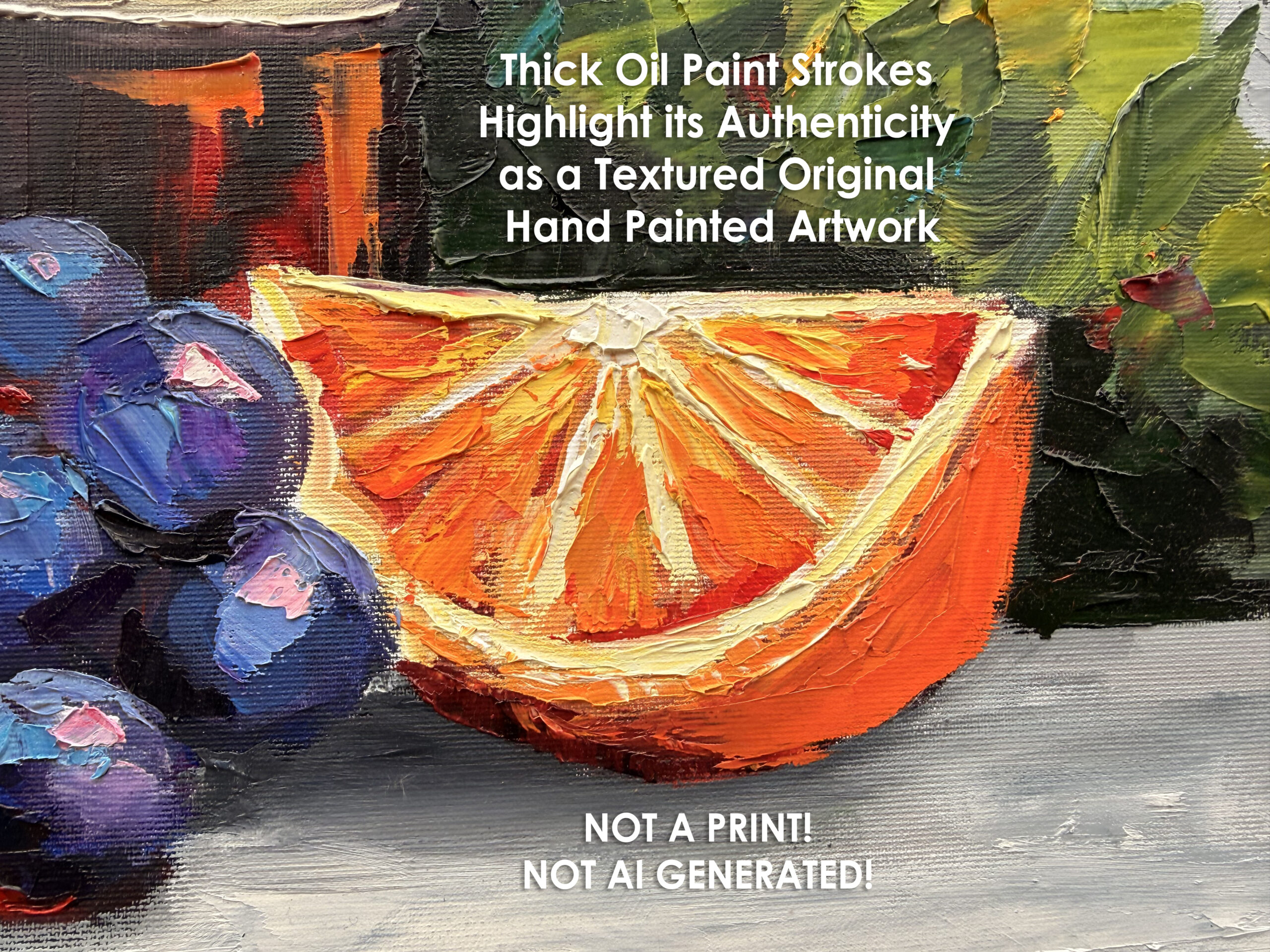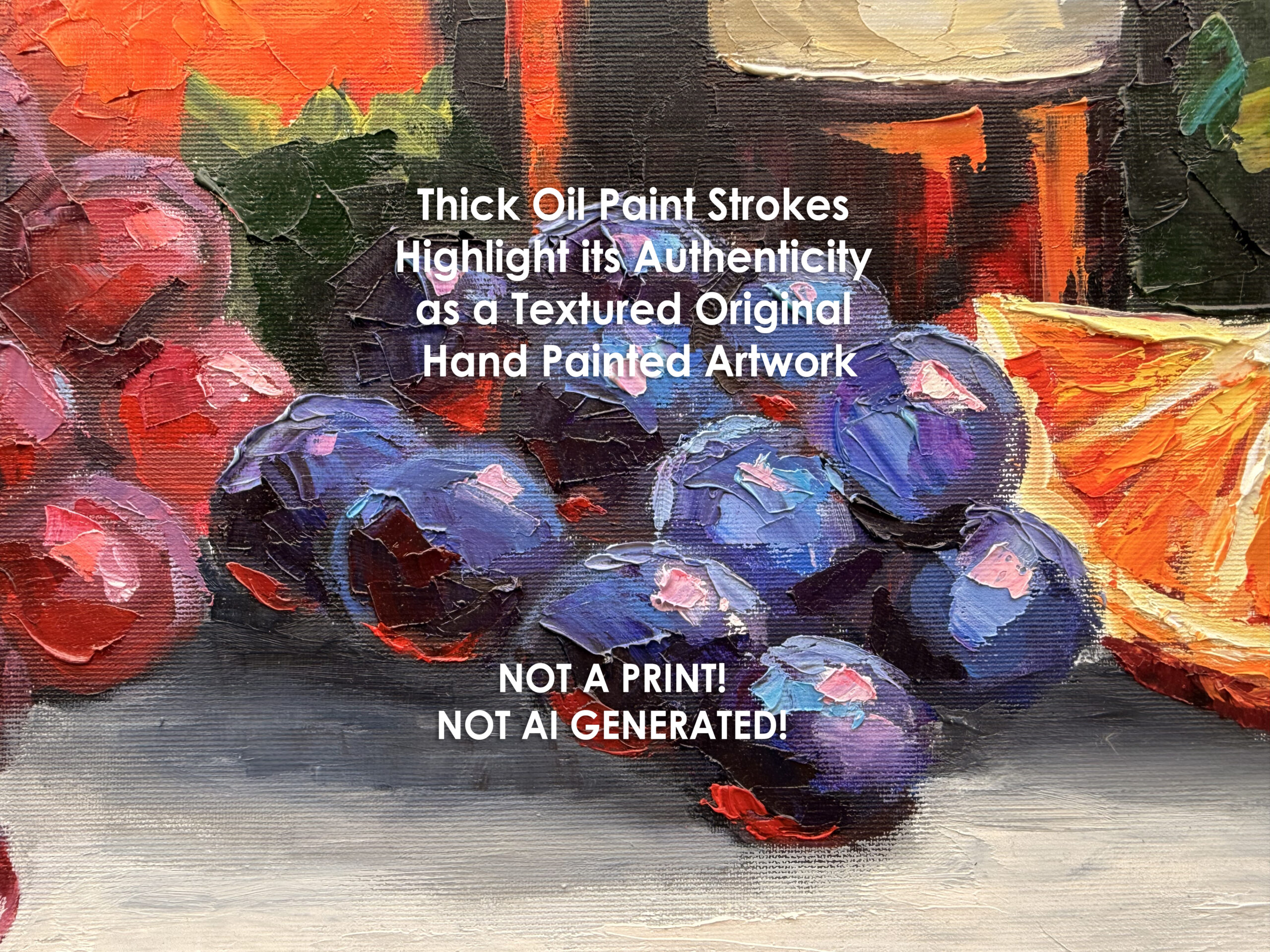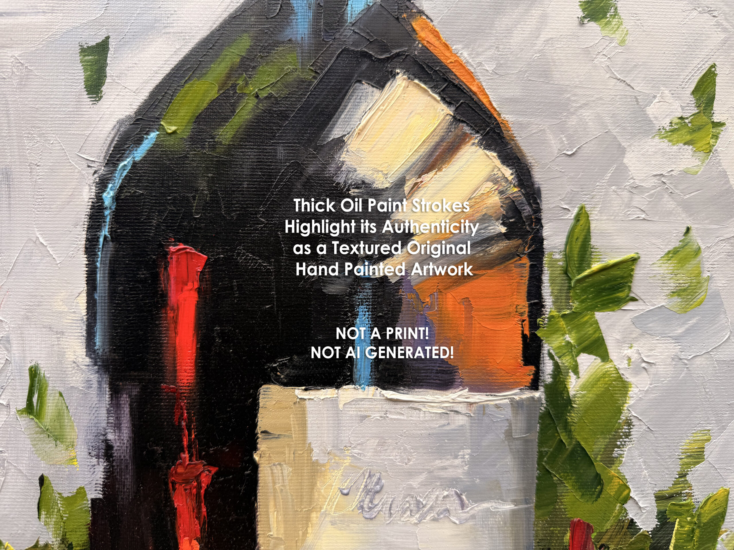 Bring character, texture, and a love for the beautiful life into your space with this original, one-of-a-kind oil painting, entirely hand-painted with a palette knife. Rich impasto layers create a strong tactile presence, with thick, expressive textures that catch the light and make the artwork feel alive.