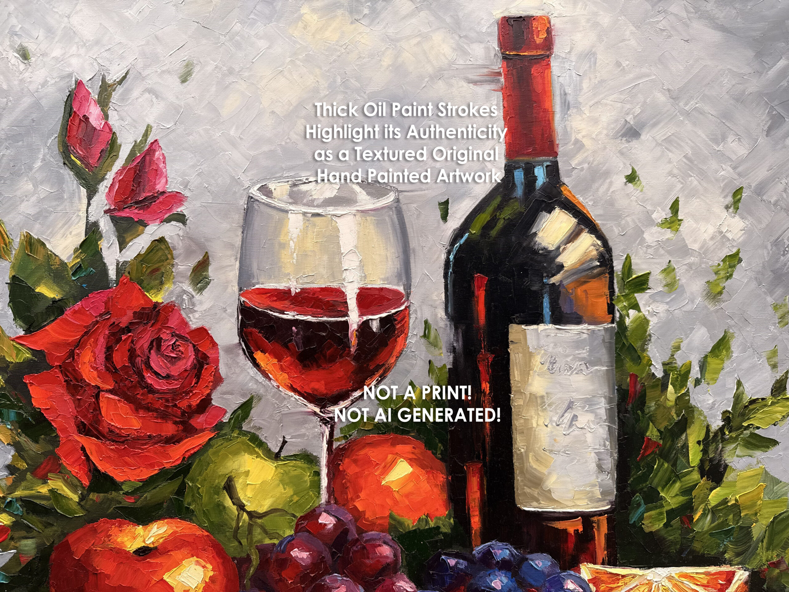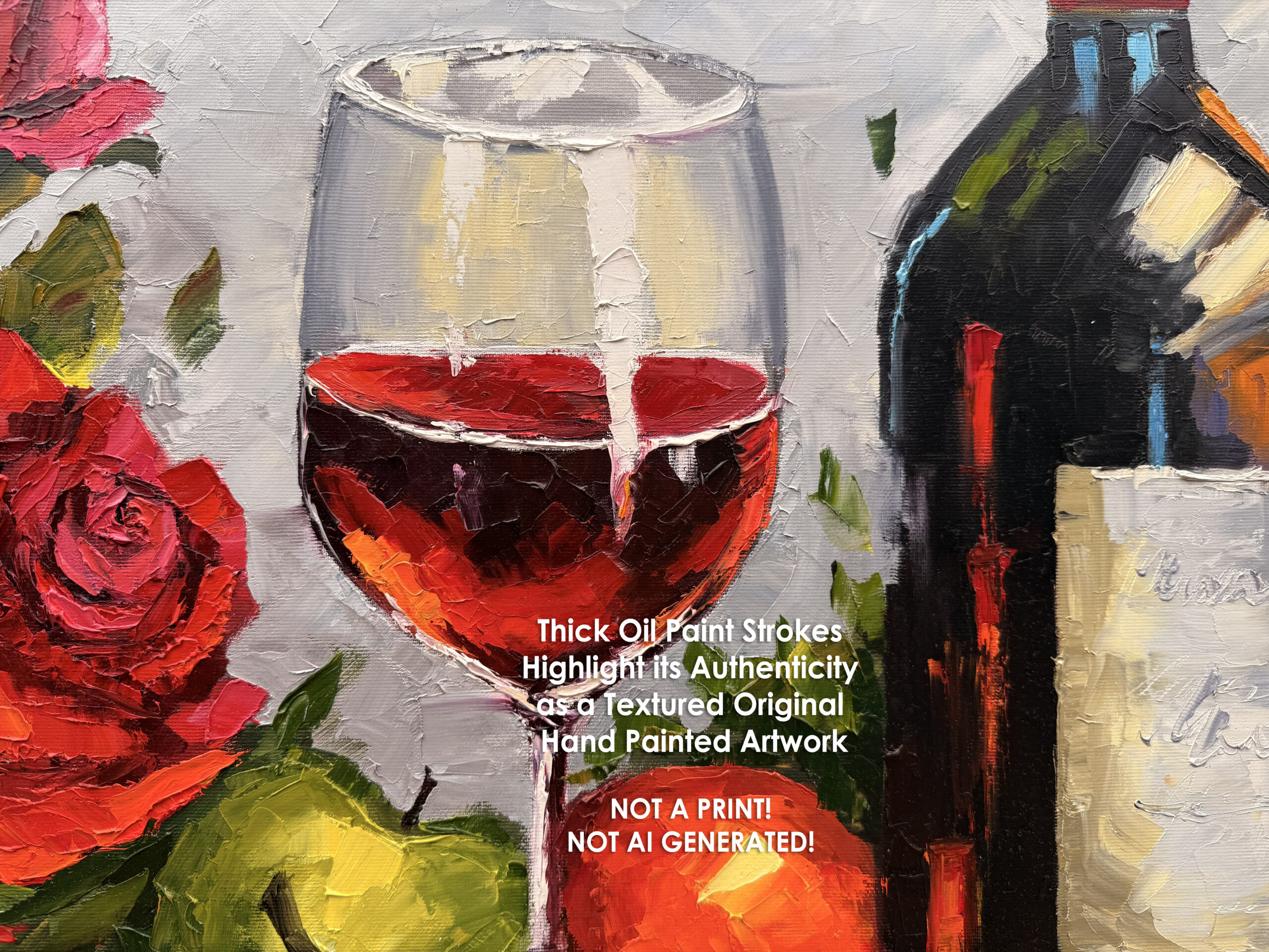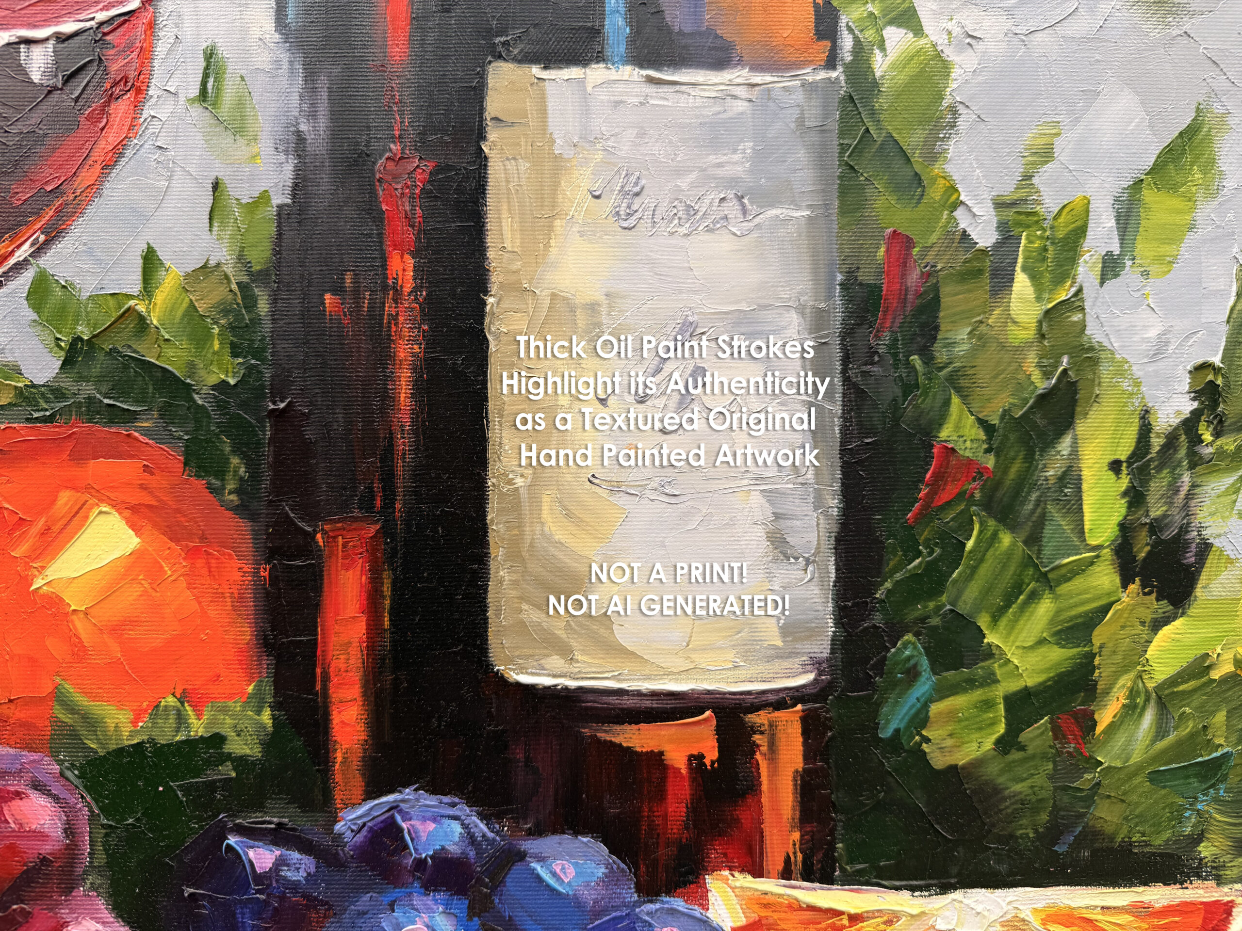 This is not a print, it’s a true original artwork, created with professional oil paints and a bold, artistic approach. Perfect for those who appreciate authenticity, craftsmanship, and the atmosphere of fine wine, shared meals, and meaningful interiors.